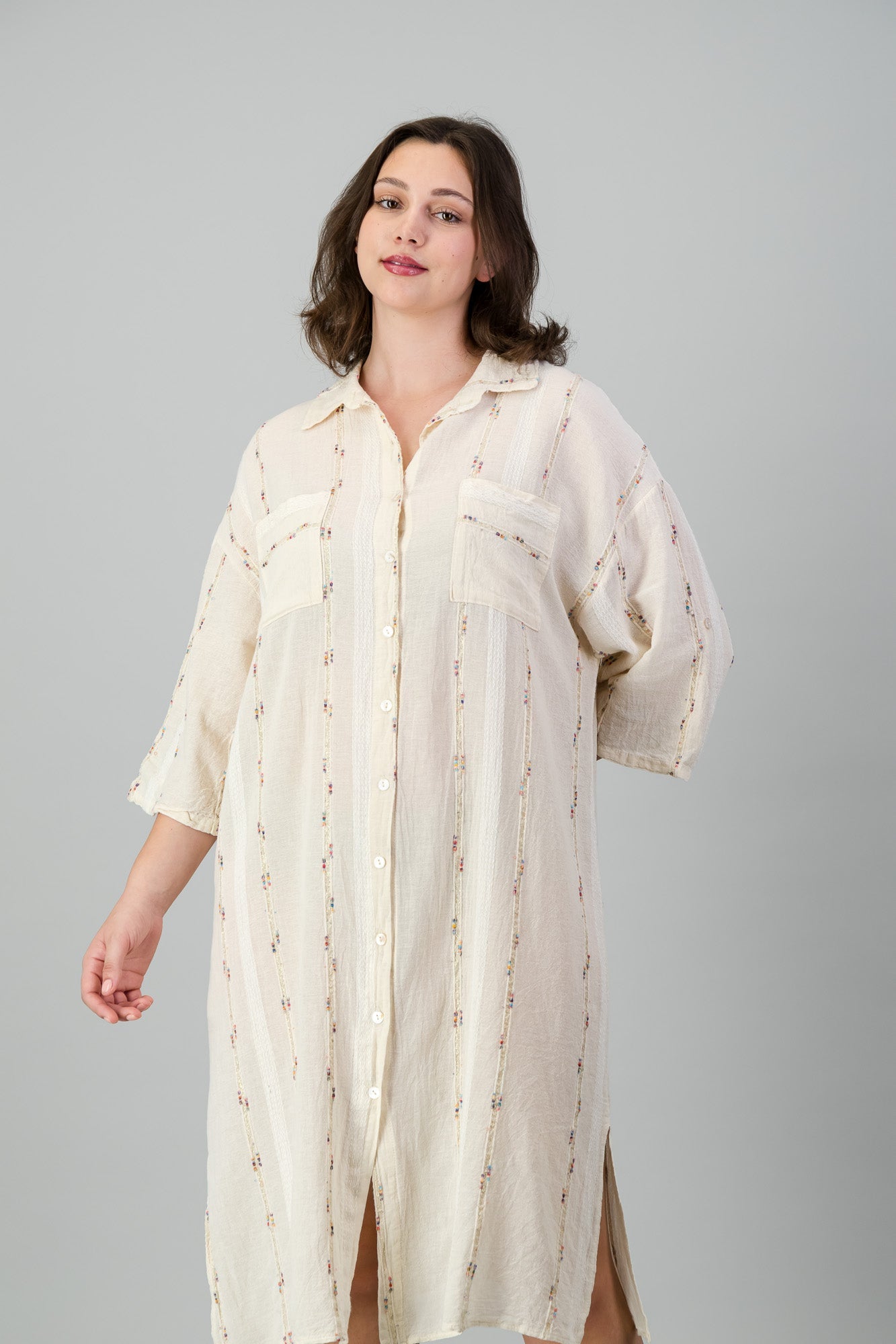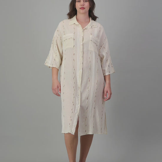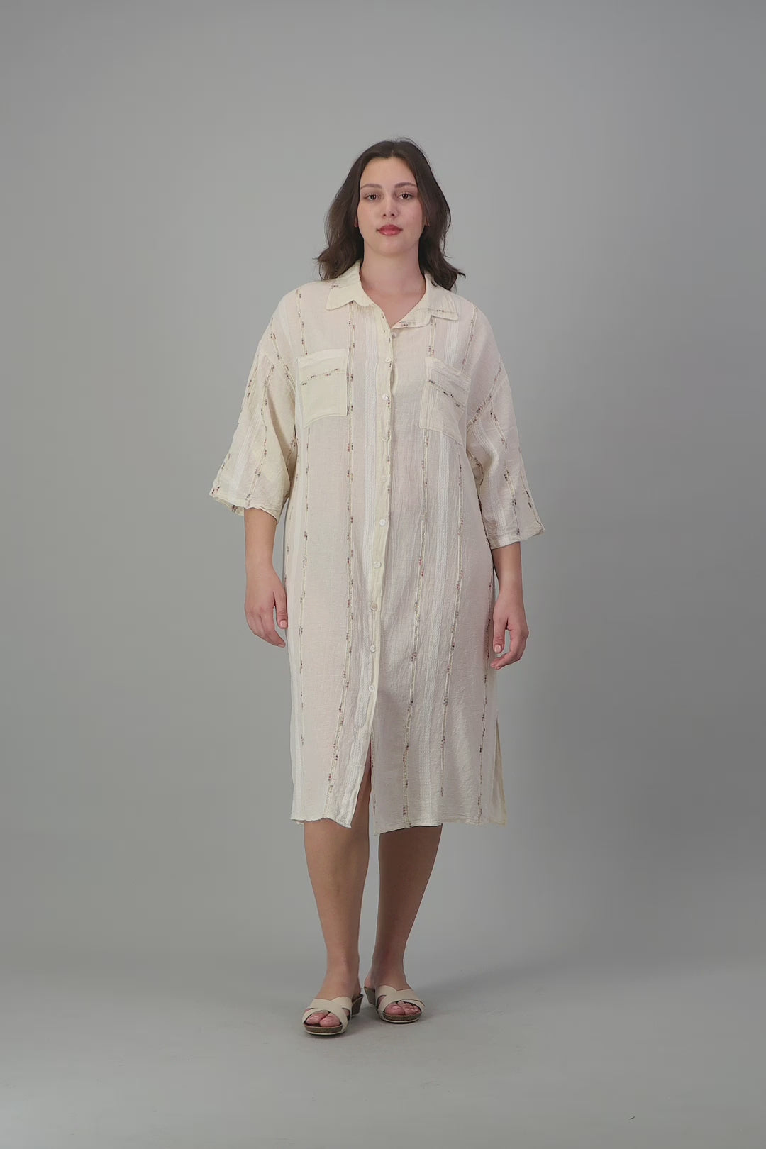 OVERSIZED SHIRT DRESS WITH FRONT POCKETS AND METAL THREAD DETAIL
