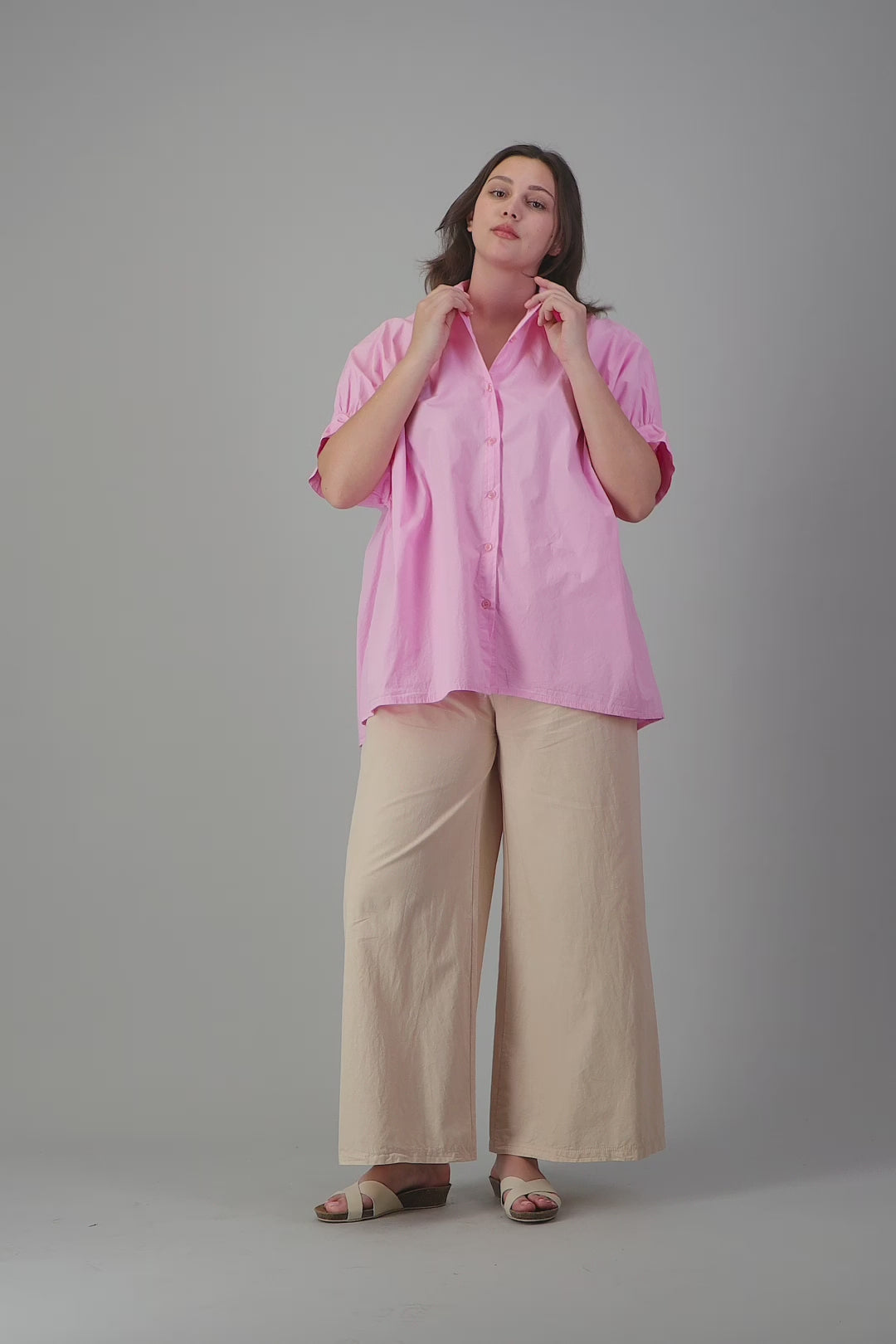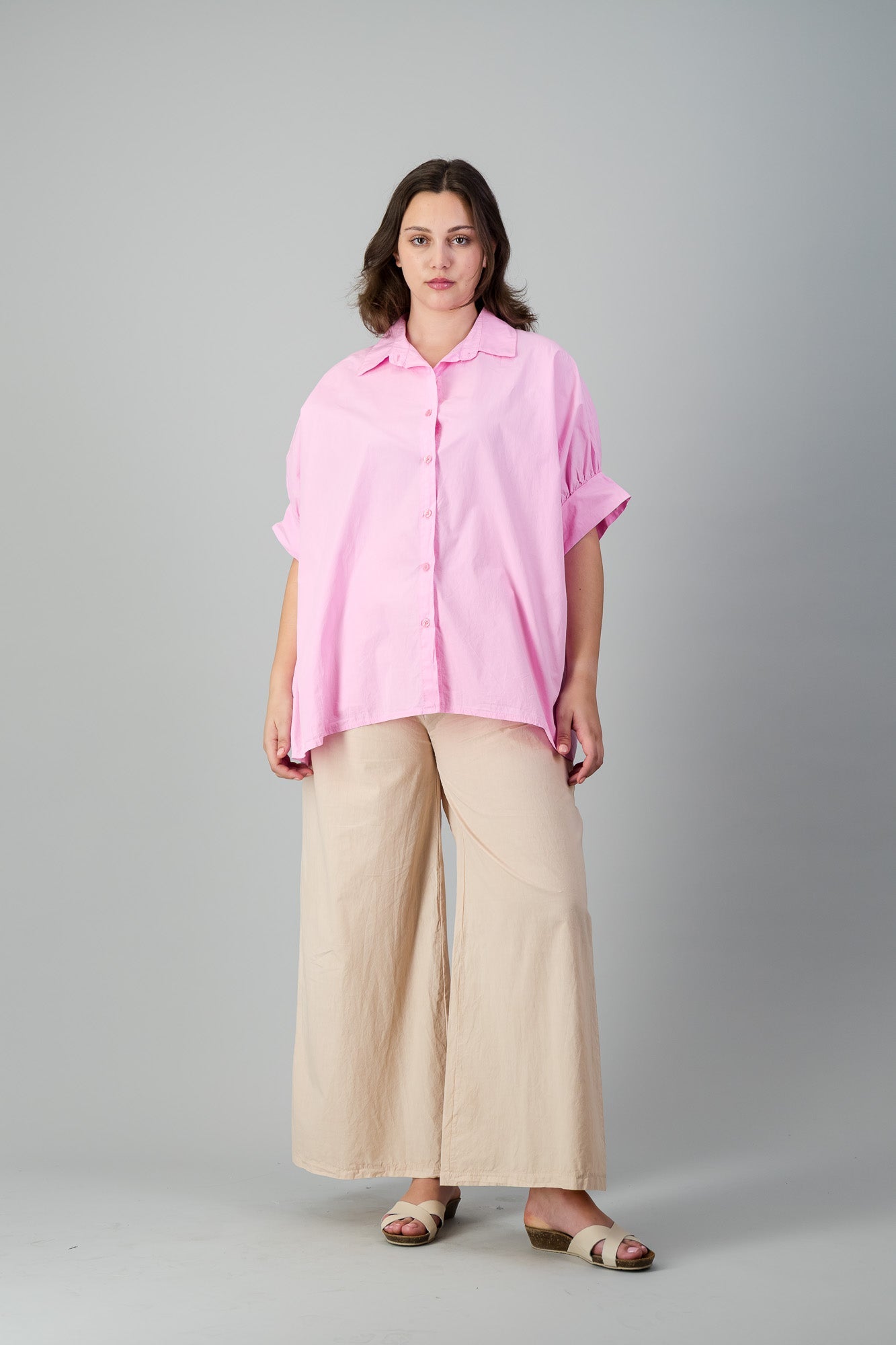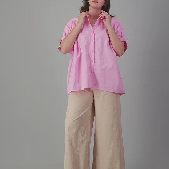 OVERSIZED SHIRT WITH GATHERED SHORT SLEEVE DETAIL