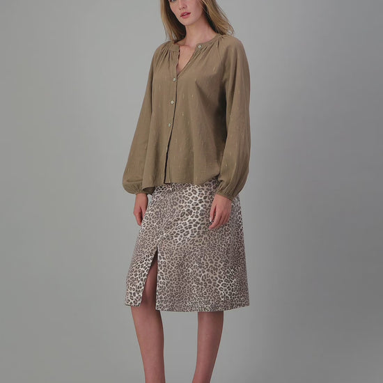 MANDARIN COLLAR BLOUSE WITH METALIC EMBROIDERY DETAIL
