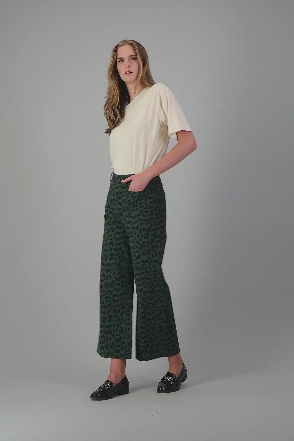 WIDE LEG LEOPARD PRINT PANTS WITH FRONT AND BACK POCKETS