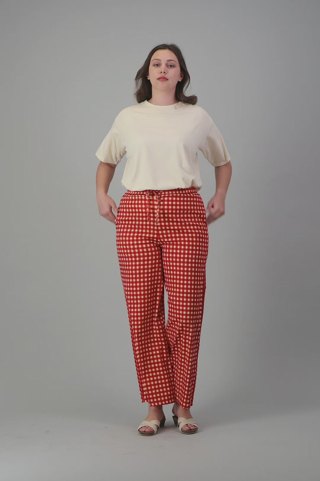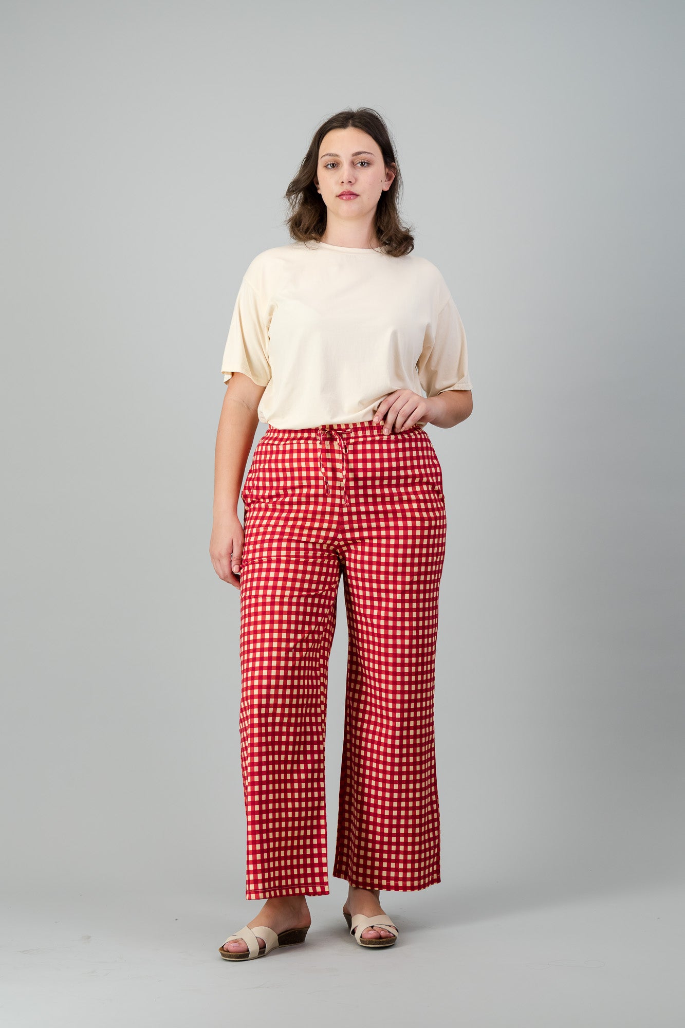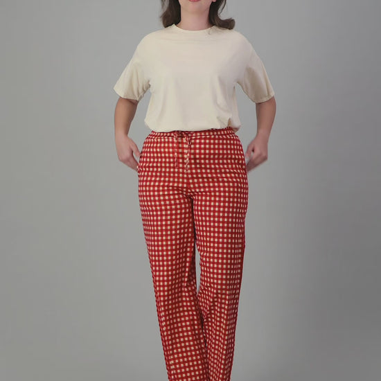 DRAWSTRING STRAIGHT CUT CHECKERED PANTS