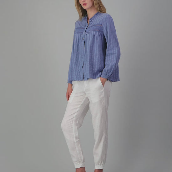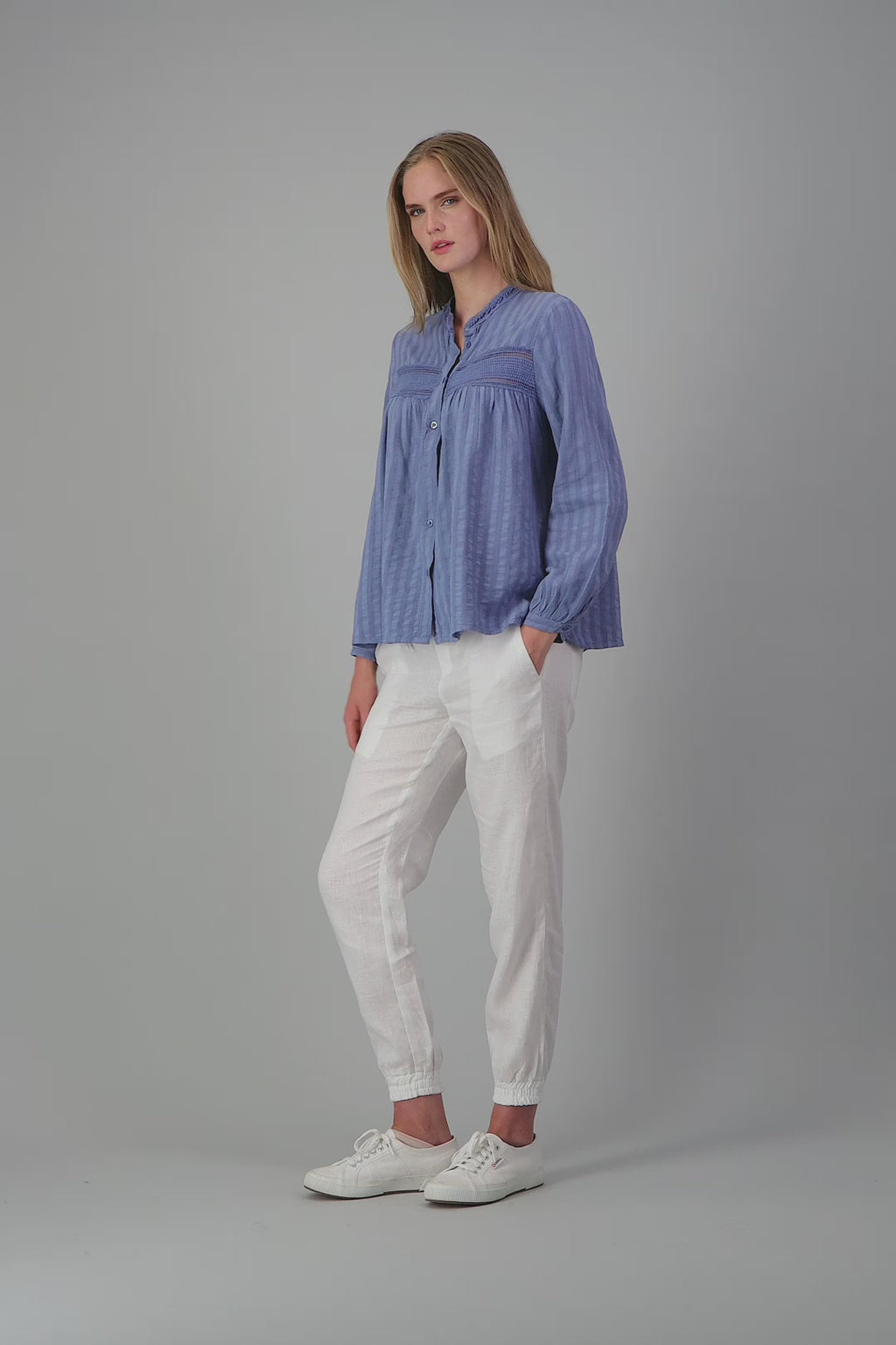 LONG SLEEVE BLOUSE WITH EMBROIDERED DETAIL AND GATHERED FRONT AND BACK