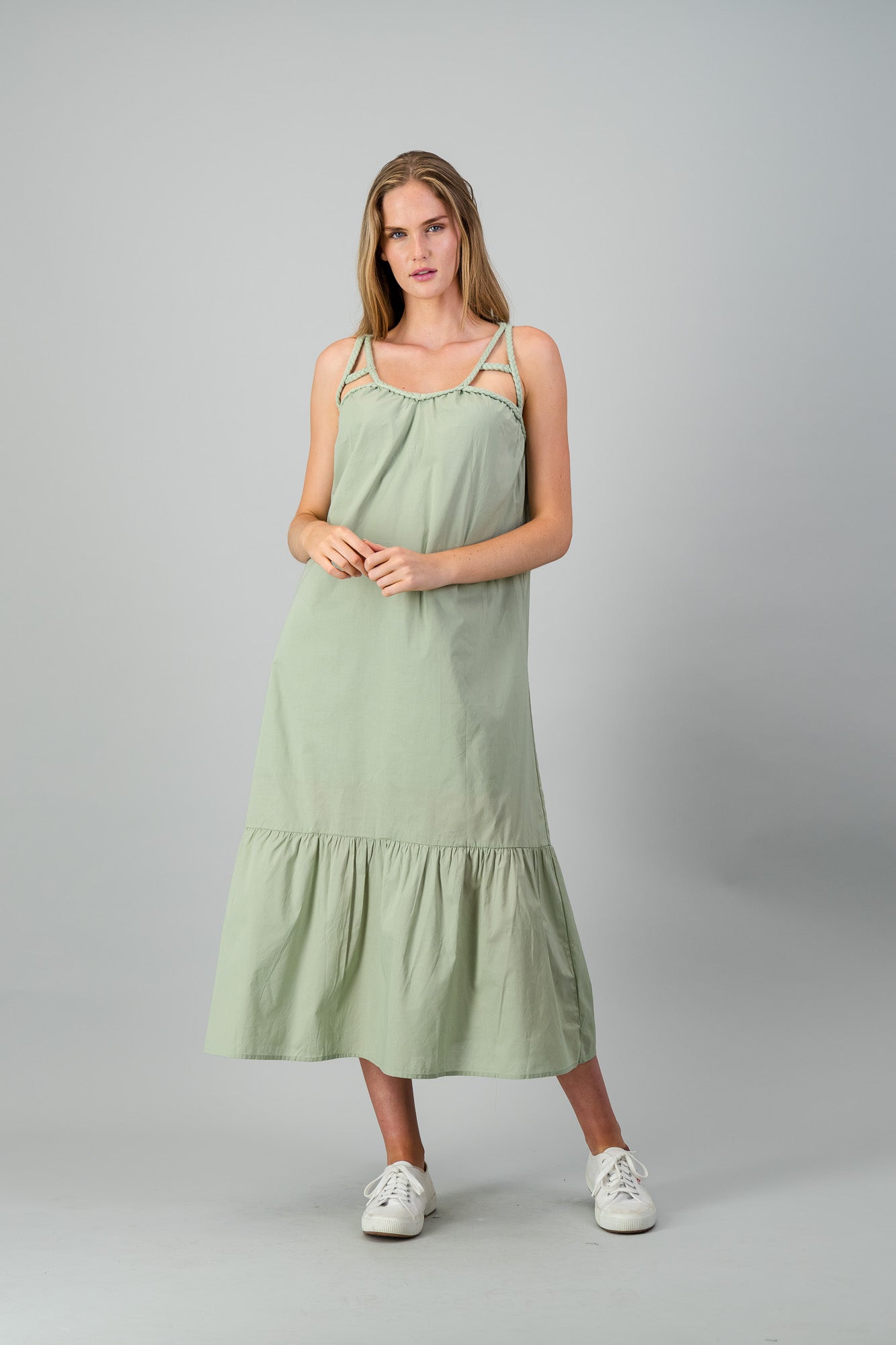 A-LINE DRESS WITH BRAIDED STRAPS IN FRONT AND BACK